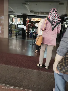 Makanya beratur lah Kak Feni menunggu turn dapat naik lif. Masa nak naik tu lif yang beroperasi 3 lif. Alhamdulillah selalunya 2 je. Sebab ramai orang management buka 3. Yela semua dah lambat masuk opis kan.